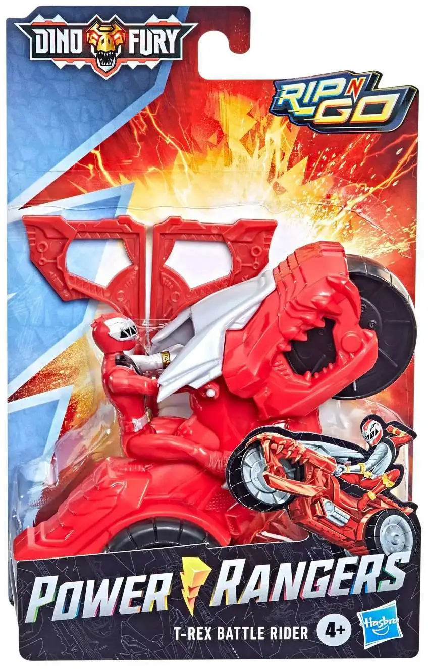 Power Rangers Dino Fury Rip N Go T-Rex Battle Rider and Dino Fury Red Ranger have exciting action inspired by the Dino Fury TV show. Kids can imagine the Dino Fury Red Ranger charging into battle to save the Earth from alien beings on this 6-inch-scale T-Rex Battle Rider vehicle by pulling the split-cord. Rip N Go!