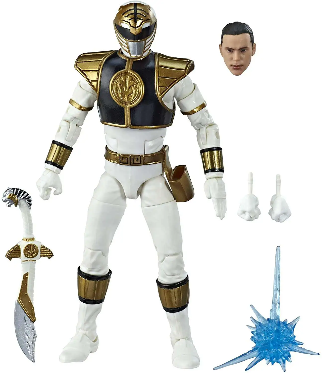 This 6-inch Lightning Collection Mighty Morphin White Ranger features premium painted details and design inspired by the original series, and multiple points of articulation for high poseability. It includes two different heads that can be easily swapped, one of the Ranger in his helmet and another without his helmet inspired by the Tommy Oliver character from the original Mighty Morphin Power Rangers Series.